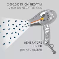 - Generator jonów ujemnych: przełącznik On-Off umożliwia kontrolę emisji jonów, co pozwala na uzyskanie pożądanego efektu stylizacji.