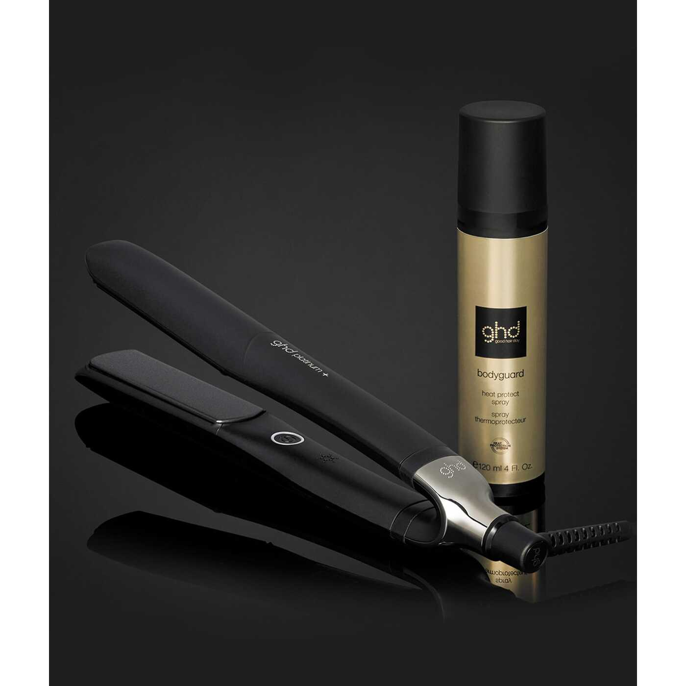 Rozpyl spray ghd Bodyguard równomiernie na suche lub wilgotne włosy przed stylizacją na gorąco. Dla najlepszych efektów stosuj w połączeniu z profesjonalnym sprzętem do stylizacji, np. prostownicą ghd chronos™ styler.
