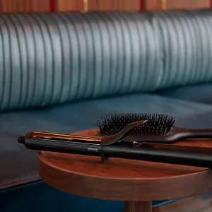 Aby uzyskać najlepsze rezultaty, użyj ghd curly ever after - curl hold spray przed stylizacją, aby chronić włosy przed ciepłem i zapewnić trwałość loków. Dla eleganckiego wyglądu glamour, kręć wszystkie włosy w jednym kierunku. Aby uzyskać efekt większej objętości, zmieniaj kierunek kręcenia pasm. Użyj ghd detangling comb do rozczesania włosów lub ghd dressing brush, aby wygładzić loki.