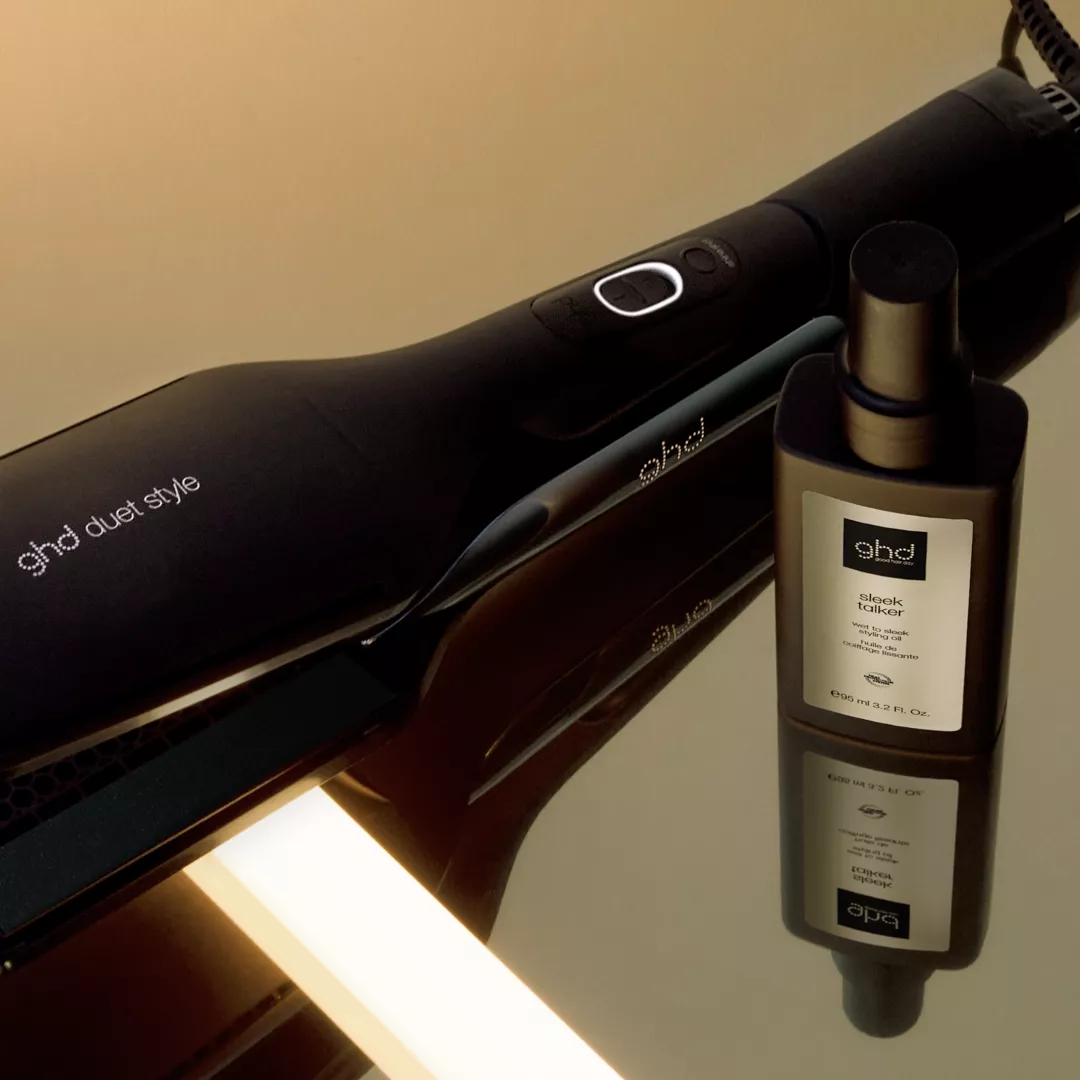 Aby uzyskać najlepsze rezultaty, aplikuj olejek ghd Sleek Talker na wilgotne włosy przed stylizacją. Następnie użyj ghd 2-w-1 hot air styler, aby maksymalnie wydłużyć trwałość stylizacji i cieszyć się gładkimi włosami przez dłużej.