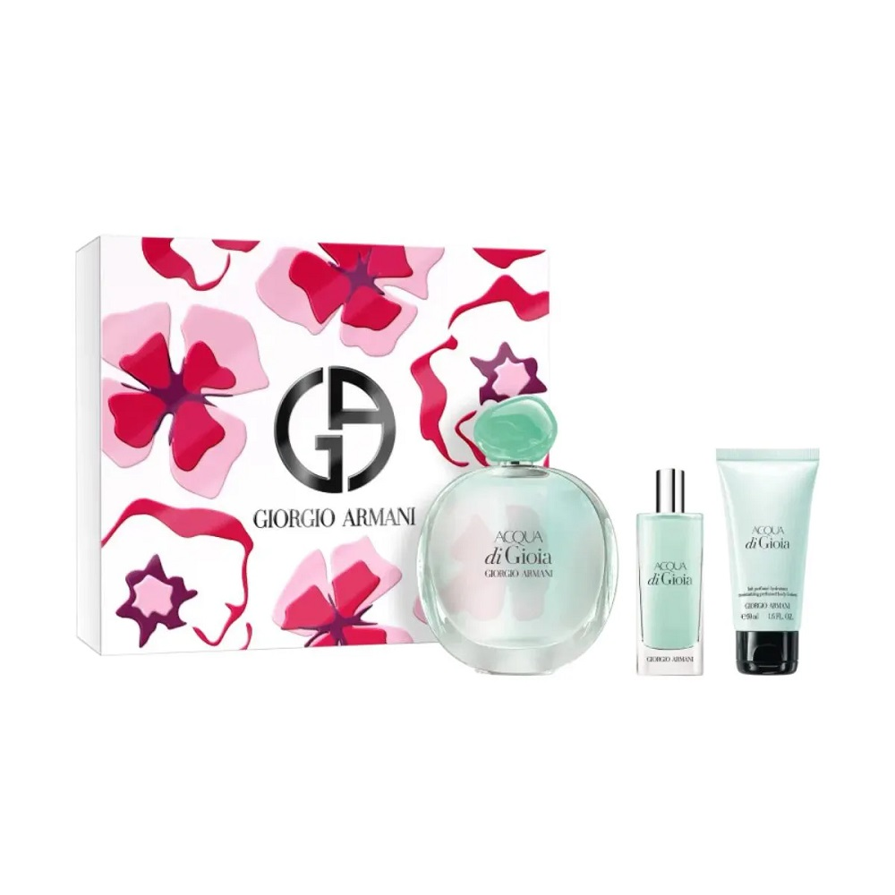 Odkryj świat świeżości i zmysłowej elegancji z zestawem Giorgio Armani Acqua di Gioia – ekskluzywną propozycją dla kobiet, które pragną podkreślić swoją energię, kobiecość i styl. Ten luksusowy zestaw prezentowy zawiera aż trzy produkty: pełnowymiarową wodę perfumowaną 100 ml, praktyczną wodę perfumowaną 15 ml idealną do torebki oraz nawilżający balsam do ciała 50 ml. Każdy element zestawu pozwala cieszyć się kultowym, orzeźwiającym zapachem Acqua di Gioia, który zachwyca swoją świeżością i trwałością.