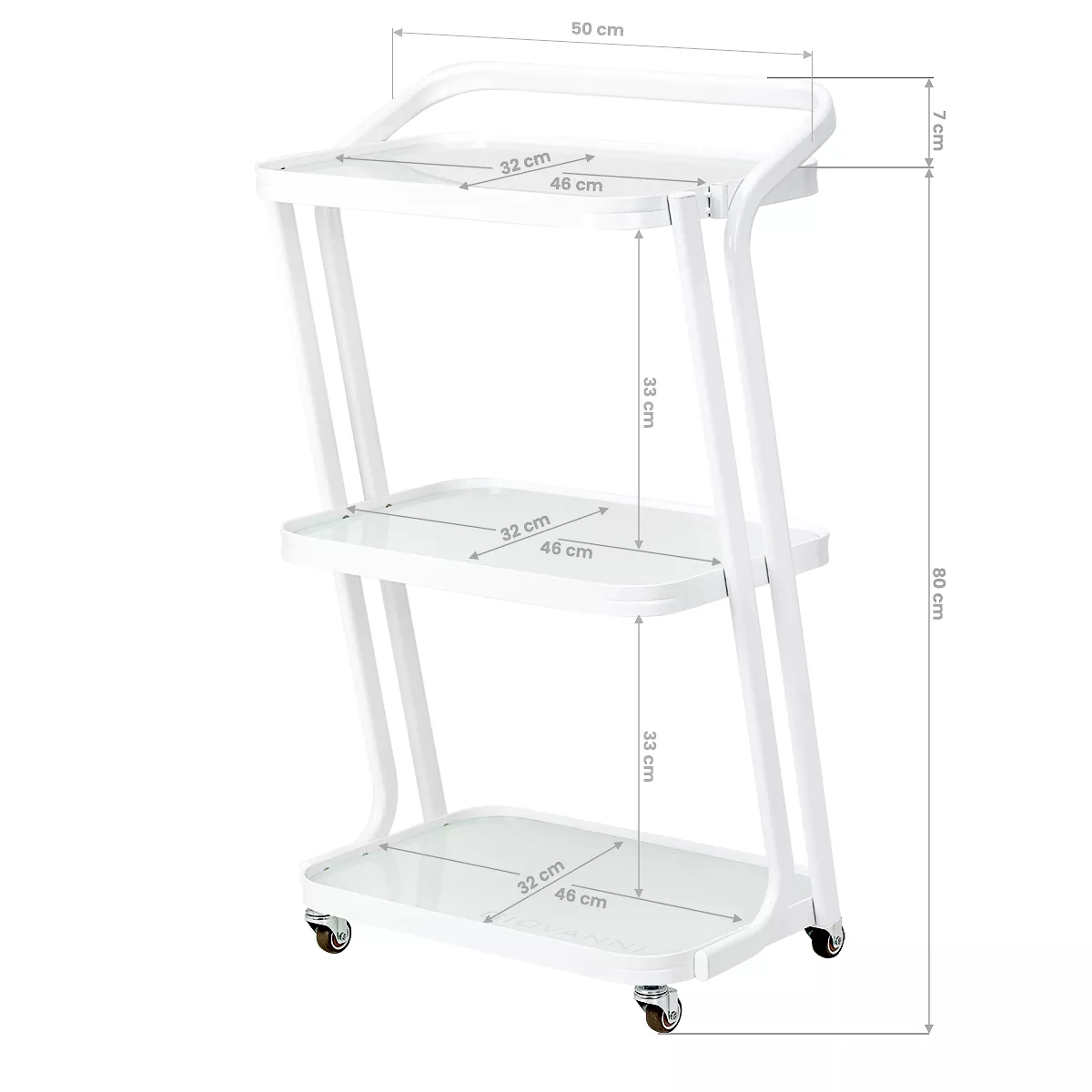 Stolik kosmetyczny Giovanni H6701 to praktyczny mebel, który doskonale sprawdzi się w każdym salonie kosmetycznym czy gabinecie SPA. Konstrukcja mebla sprawia, że jest lekki, ale jednocześnie stabilny, co przekłada się na efektywność pracy. Trzy szklane półki umożliwiają wygodne przechowywanie i organizację kosmetyków, akcesoriów oraz sprzętu niezbędnego podczas zabiegów. Minimalistyczne wykończenie dodaje wnętrzom profesjonalnego charakteru.