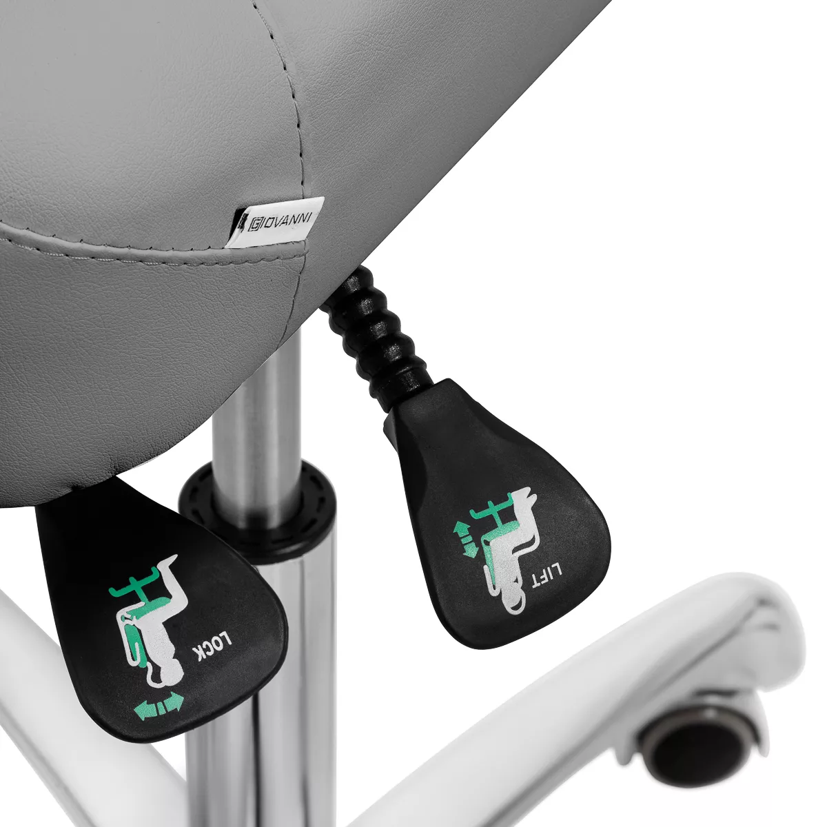 Taboret podologiczny Giovanni 1005 o unikalnym kształcie i ergonomicznym oparciu świetnie sprawdzi się w profesjonalnych gabinetach. Innowacyjna konstrukcja oparcia zapewnia wygodę podczas wykonywania zabiegów w różnych pozycjach, dbając o komfort zarówno klienta, jak i osoby wykonującej usługę, co czyni go idealnym wyborem do codziennej pracy.