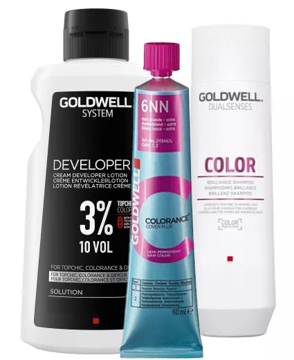 Zestaw do półtrwałej koloryzacji Goldwell Colorance Cover Plus, kryjącej do 75% siwych włosów, w skład którego wchodzą: