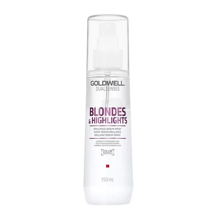 Goldwell Dualsenses Blondes & Highlights to nabłyszczające serum w sprayu, które zostało stworzone specjalnie z myślą o włosach blond oraz z pasemkami. Dzięki zaawansowanej technologii microPROtec complex, serum zapewnia intensywną ochronę koloru i równomierne rozprowadzenie składników pielęgnacyjnych, co gwarantuje natychmiastowy efekt odżywienia i blasku. Dodatkowo, innowacyjna technologia Luminescine przekształca niewidzialne światło UV w widoczne, zapewniając niezwykłą promienistość koloru.