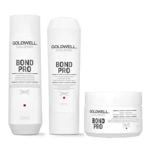 Dla efektu natychmiastowego wzmocnienia włosów w codziennej pielęgnacji sięgnij po szampon odbudowujący Goldwell Dualsenses Bond PRO. Kosmetyk zapewnia codzienną, kompleksową pielęgnację włosom osłabionym, łamliwych i zniszczonym. Specjalna formuła FadeStopFormula minimalizuje blaknięcie koloru przy każdym myciu. Wzmacniająca odżywka do włosów Goldwell Dualsenses Bond PRO ekspresowo poprawia wygląd i kondycję włosów. Włosy są mocniejsze, pełniejsze, mniej łamliwe. Odżywka zapobiega mechanicznym uszkodzeniom włosów podczas czesania i szczotkowania włosów.