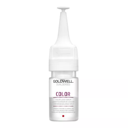 Serum przypieczątowujące kolor Goldwell Dualsenses Color powstało z myślą o włosach farbowanych, cienkich i normalnych. Kosmetyk natychmiast przypieczętowuje kolor, pielęgnuje i ułatwia rozczesywanie. Zachowuje świeżość koloru do 22 myć. Ponadto świetnie wydobywa połysk koloru. Swoje działanie opiera na technologii microPROtec complex z wbudowaną ochroną koloru, która w równomierny sposób rozprowadza składniki pielęgnacyjne. Dzięki temu efekt odżywienia jest odczuwalny natychmiast. Ponadto udoskonalona FadeStopFormula redukuje wypłukiwanie się koloru w trakcie mycia włosów. Całkowitą innowacją zastosowaną w tej serii jest technologia Luminescine, która przemienia niewidzialne światło UV w widoczne światło dla niezrównanej promienistości koloru.