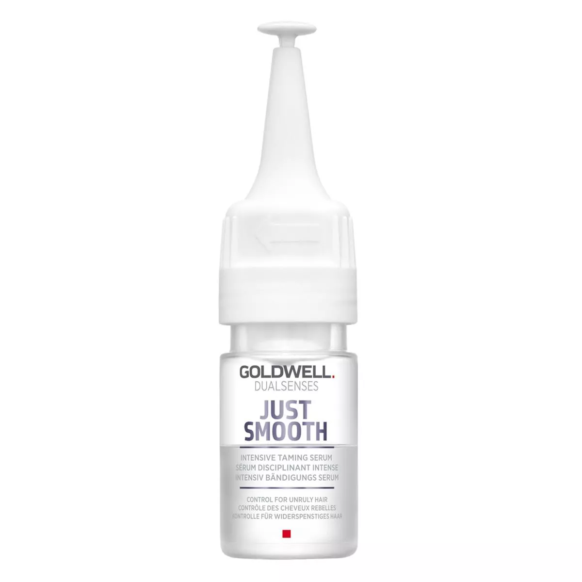 Serum intensywnie ujarzmiające Goldwell Dualsenses Just Smooth przeznaczone jest do pielęgnacji włosów trudnych do ułożenia, puszących się i niesfornych. Kosmetyk ułatwia układanie oraz zwalcza problem puszenia się włosów. Świetnie rozplątuje włosy oraz znacznie ułatwia ich rozczesywanie. Doskonale chroni przed wilgocią oraz uwydatnia naturalne piękno włosów. W składzie znajduje się również olejek z orzechów kukui, który działa nawilżająco, wyrównuje powierzchnię włosów oraz wygładza ich strukturą, sprawiając, że lepiej się rozczesują i są pod kontrolą.