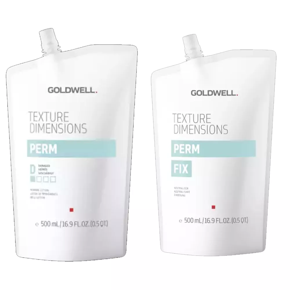 Goldwell Texture Dimensions, zestaw do trwałej ondulacji, lotion D-Damaged + utrwalacz, 500ml
