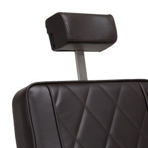 Komfortowe siedzisko gwarantuje klientowi wygodę w trakcie różnorodnych usług. Zapewniające doskonałe wsparcie pleców ergonomiczne oparcie pozwala na zajęcie dogodnej pozycji, co ma znaczenie zwłaszcza w przypadku dłuższych zabiegów. Wyposażenie fotela w mechanizm pełnego obrotu sprawia, że praca staje się bardziej efektywna i wygodna. Tapicerowane podłokietniki umieszczone na odpowiedniej wysokości umożliwiają prawidłowe ułożenie barków klienta, zapobiegając chowaniu głowy w ramionach i garbieniu się.