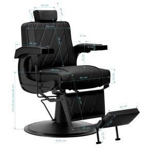 Solidna konstrukcja okrągłej podstawy zapewnia stabilność oraz wysoki komfort użytkowania. Wypełnienie siedziska z odpornej na odkształcenia pianki oraz obicie wykonane z przyjemnej w dotyku skóry syntetycznej o matowym wykończeniu zapewniają trwałość mebla oraz jego komfortowe użytkowanie przez długi czas. Stylowe przeszycia na tapicerce nadają fotelowi charakteru, przywodząc na myśl design motoryzacyjny, co podkreśla jego elegancki wygląd. Sprawiają również, że sprzęt jest odporny na wilgoć, wytrzymały oraz łatwy do czyszczenia. Pokrycie w odcieniach czerni nadaje mu wyjątkowego charakteru, a minimalistyczny styl pozwala mu wpasować się w wystrój każdego salonu barberskiego.
