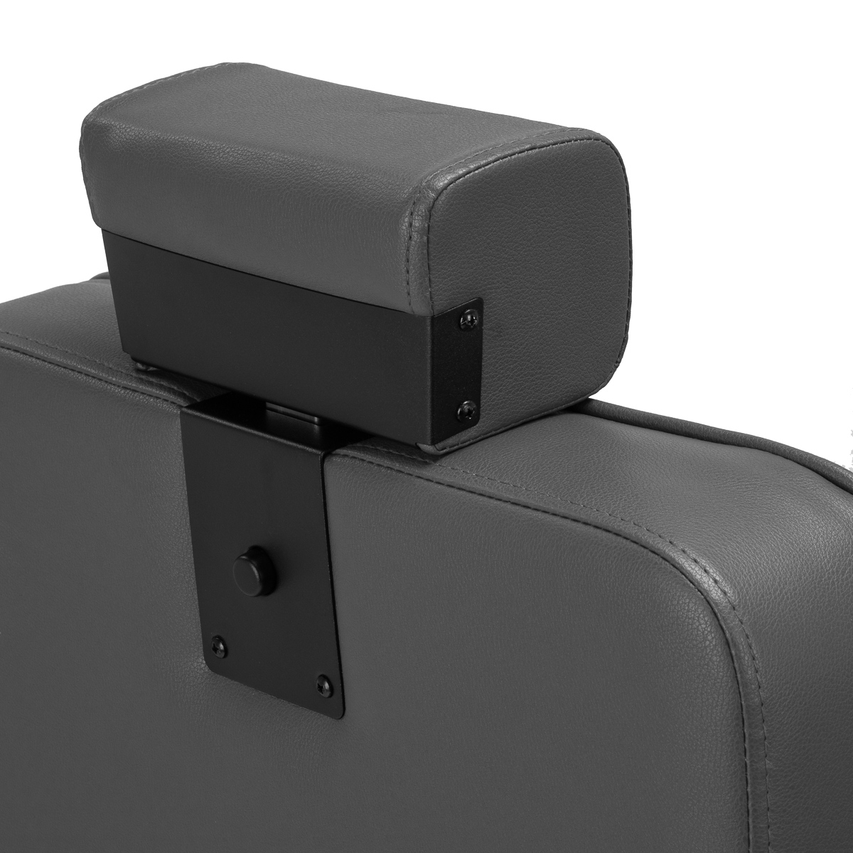 Wydajny podnośnik hydrauliczny umożliwia swobodną regulację wysokości siedziska w granicach 55-68 cm, nawet w momencie, gdy klient zajmie już miejsce w fotelu. Gwarantuje to ergonomiczną pracę i ułatwia dopasowanie poziomu siedziska do wzrostu zarówno klienta, jak i osoby wykonującej zabieg. Fotel posiada odchylane oparcie oraz regulowany podnóżek, dzięki czemu możliwe jest ułożenie klienta w dogodnej, półleżącej pozycji. Takie ustawienie gwarantuje lepszy dostęp podczas niektórych usług. Dodatkowo wysuwany o 20 cm zagłówek zapewnia doskonałe podparcie głowy.