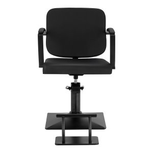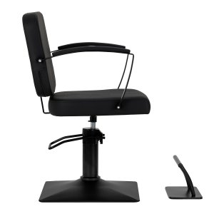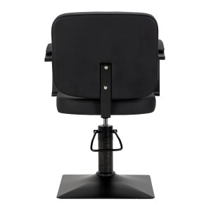 Solidna, kwadratowa podstawa fotela zapewnia stabilność, a jej gładka powierzchnia ułatwia utrzymanie czystości. Estetyczne, tapicerowane podłokietniki o ergonomicznym kształcie umieszczono na optymalnej wysokości, dzięki czemu klient przyjmuje naturalną, prawidłową pozycję. Zwiększa to komfort oraz wspiera swobodną postawę, co przekłada się na płynniejszy przebieg zabiegów oraz umożliwia fryzjerowi precyzyjną pracę na każdym etapie usługi.