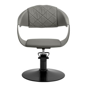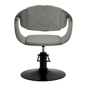 Wytrzymała konstrukcja z tworzywa sztucznego w odcieniach szarości zapewnia trwałość. Zastosowane materiały sprawiają, że sprzęt jest komfortowy w użytkowaniu, odporny na wilgoć oraz łatwy do czyszczenia. Okrągła podstawa w odcieniach czerni gwarantuje stabilność i wytrzymałość. Minimalistyczna szarość w połączeniu z estetycznymi przeszyciami oraz czernią podstawy sprawia, że fotel doskonale komponuje się z różnymi stylami wnętrz salonów fryzjerskich, wprowadzając elegancki i nowoczesny akcent.