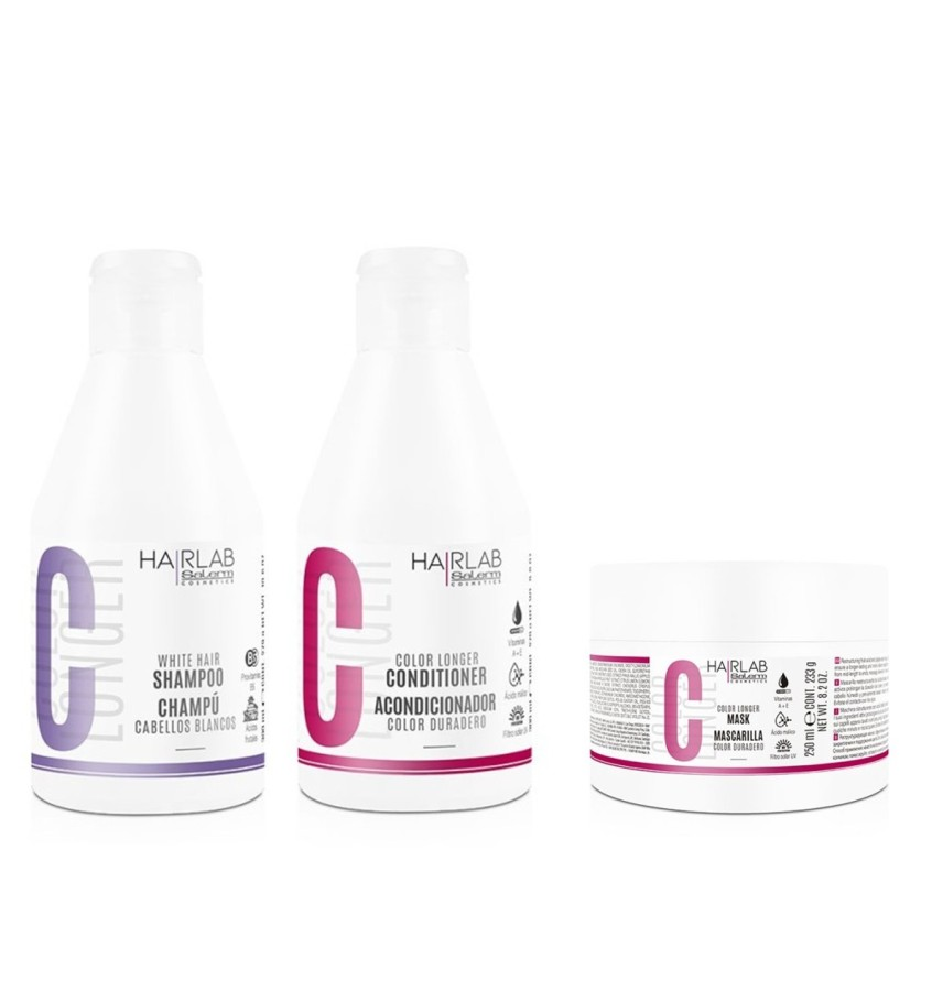 Zestaw HAIRLAB ochrona koloru to profesjonalna linia produktów, która zawiera w składzie wyselekcjonowane składniki zapewniające zdrowe, mocne i lśniące włosy. Linia przeznaczona do włosów farbowanych, rozjaśnionych oraz siwych. Formuła wzbogacona jest o kwasy owocowe, które przedłużają trwałość koloru, pro-witaminę B5, która odżywia włosy chroniąc je przed wolnymi rodnikami i promieniowaniem słonecznym.