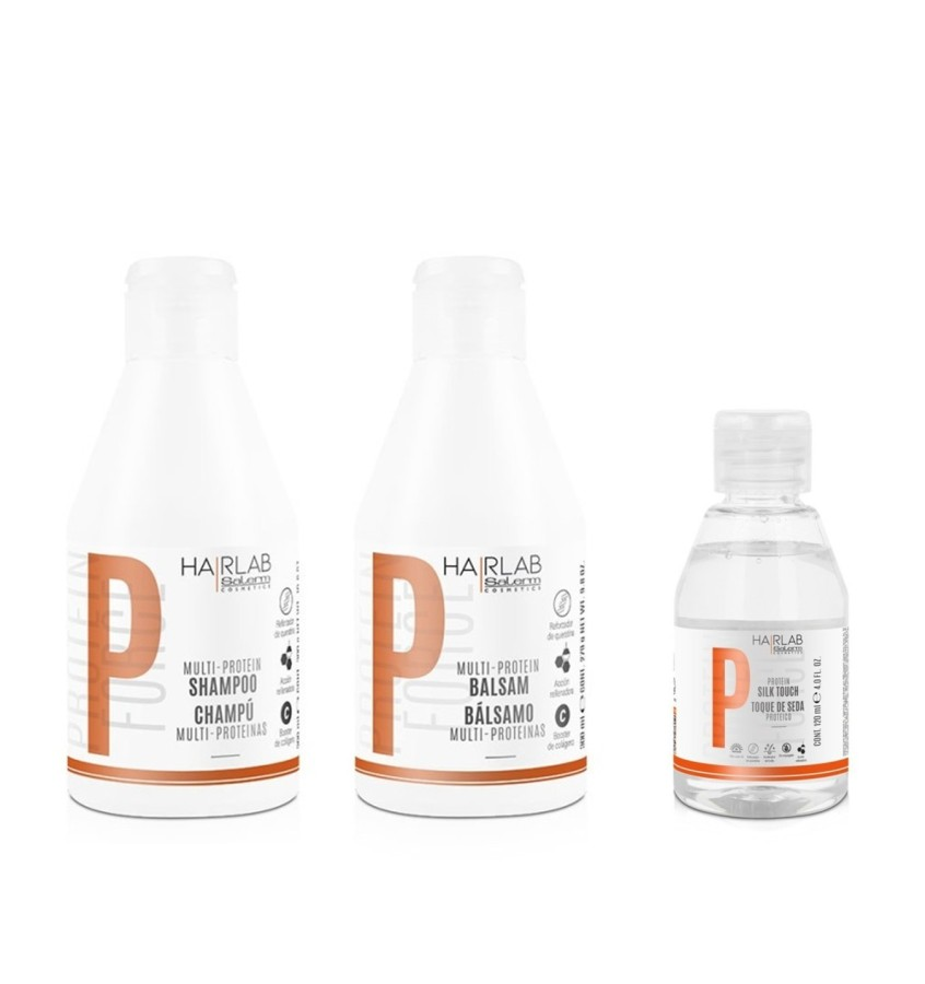 Profesjonalny zabieg regenerujący włosy HAIRLAB Multi-protein dedykowany do włosów zniszczonych. Zestaw z bogactwem aminokwasów zawierający hydrolizowaną keratynę oraz niezbędny dla właściwej kondycji włosów aminokwas - cystynę. Cystyna wraz z aminokwasami siarkowymi odbudowują wiązania dwusiarczkowe włosów i intensywnie regenerują przywracając im naturalny blask oraz miękkość. Dzięki dodatkowi kolagenu oraz protein jedwabiu uzyskujemy synergię działań i włosy dodatkowo stają się wyjątkowo elastyczne i przyjemne w dotyku.