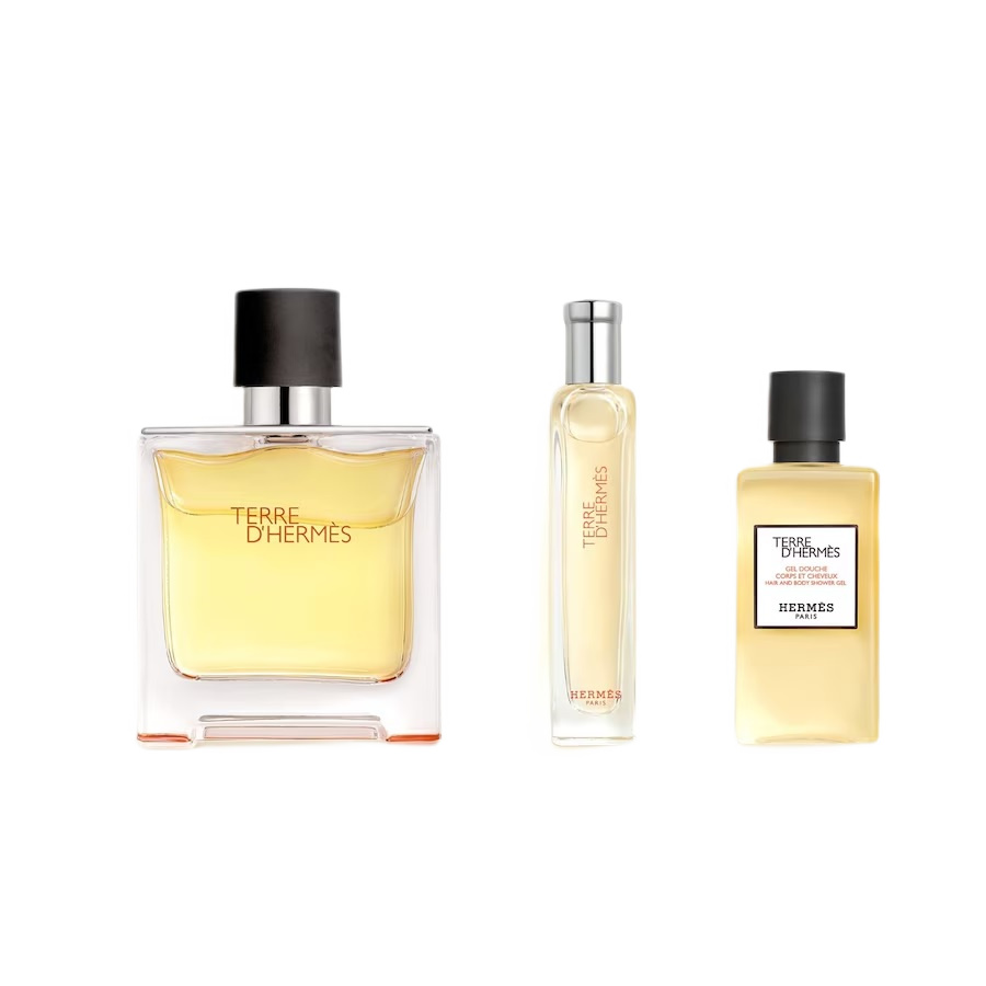 Zestaw prezentowy Hermes Terre D'Hermes to idealny wybór dla mężczyzn, którzy cenią sobie elegancję i subtelność. Ten wyjątkowy zestaw zawiera perfumy o pojemności 75 ml, poręczny spray 15 ml oraz żel pod prysznic o pojemności 40 ml, co czyni go doskonałym rozwiązaniem na każdą okazję.