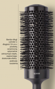 - Długi cylinder o długości 15 cm – umożliwia szybkie suszenie i stylizację nawet długich i gęstych włosów.