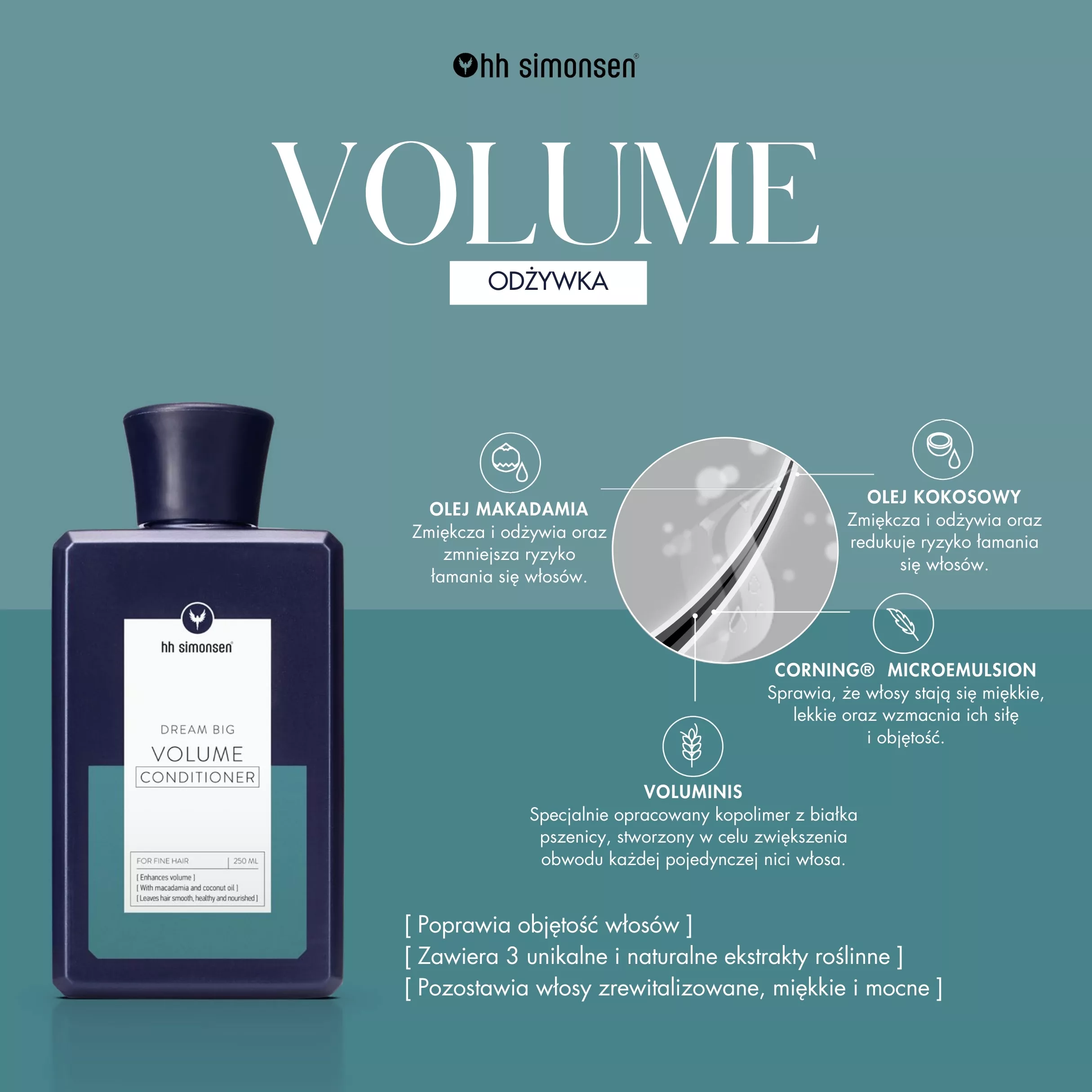 HH Simonsen Volume to idealne rozwiązanie dla osób z cienkimi włosami, które pragną dodać im objętości i blasku. Dzięki starannie dobranym składnikom, Twoje włosy będą wyglądać zdrowo i pięknie każdego dnia. Wybierz naszą odżywkę i ciesz się efektami, które Cię zachwycą!