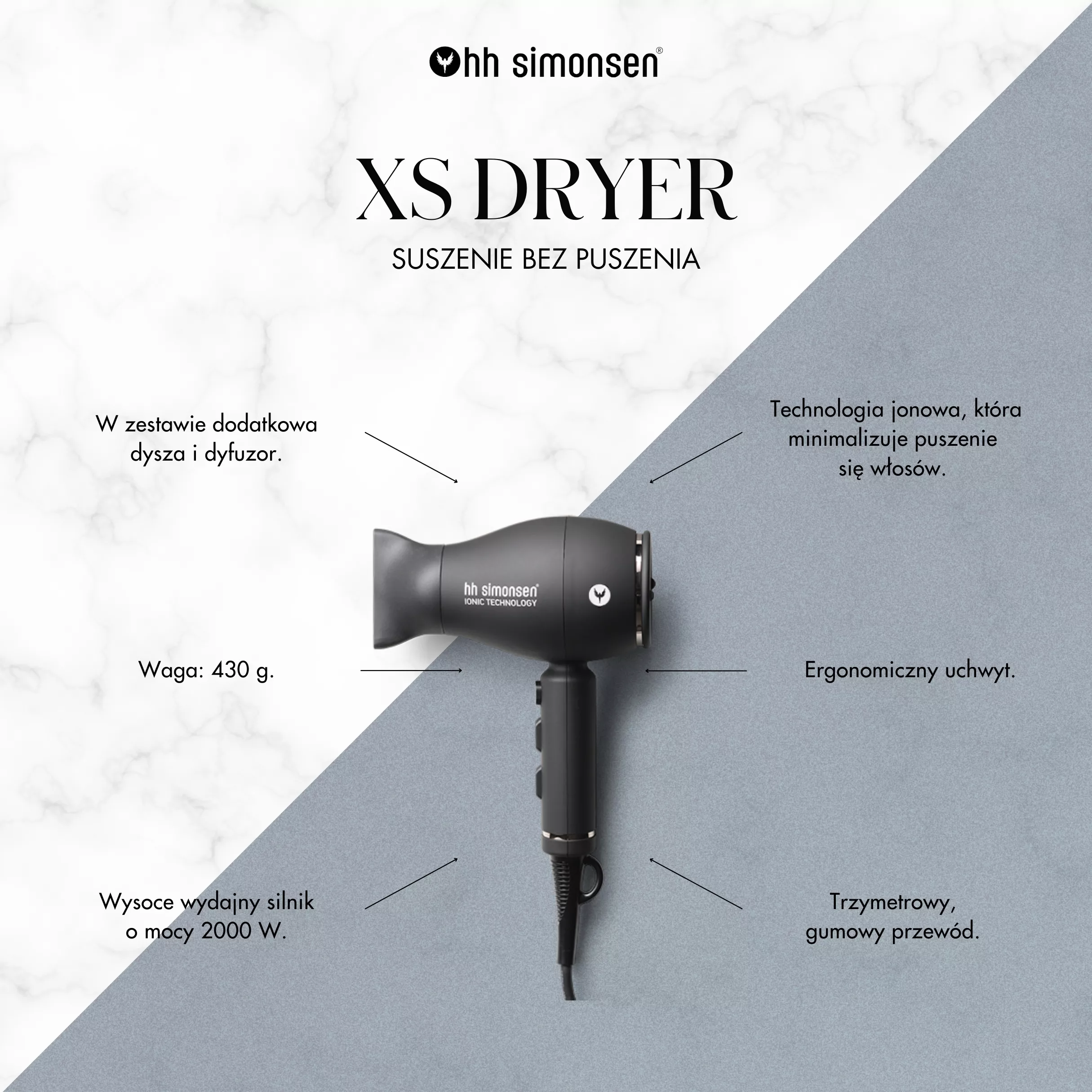 Nie czekaj dłużej, aby doświadczyć wyjątkowej technologii i komfortu, jakie oferuje HH Simonsen XS Dryer. Zainwestuj w swoje włosy i ciesz się pięknym, lśniącym wyglądem każdego dnia!
