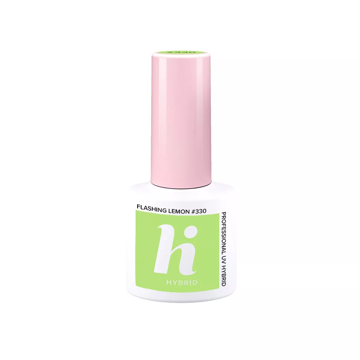 Większość lakierów hi hybrid utwardza się w 45 sekund, jednak dla niektórych kolorów, w tym #330 Flashing Lemon, zaleca się utwardzanie przez 60 sekund, aby zapewnić maksymalną trwałość i intensywność koloru.