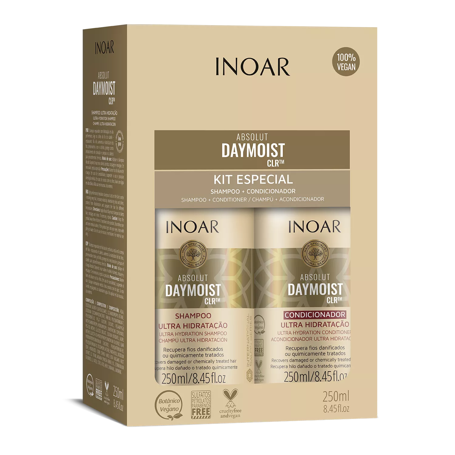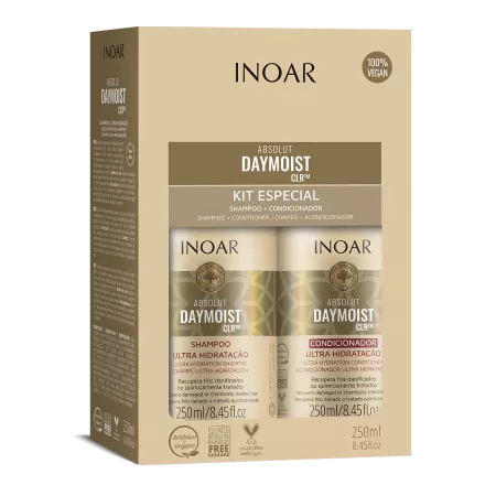 Odkryj profesjonalną pielęgnację włosów suchych i zniszczonych z INOAR Absolut Daymoist CLR DUO PACK – zestawem szamponu i odżywki o pojemności 2x250 ml. Ten wyjątkowy duet, stworzony z myślą o włosach wymagających intensywnego nawilżenia i regeneracji, doskonale sprawdzi się także po zabiegach chemicznych oraz keratynowych. Dzięki zawartości ekstraktów roślinnych, kosmetyki głęboko wnikają w strukturę włosa, przywracając mu zdrowy wygląd, elastyczność i blask.