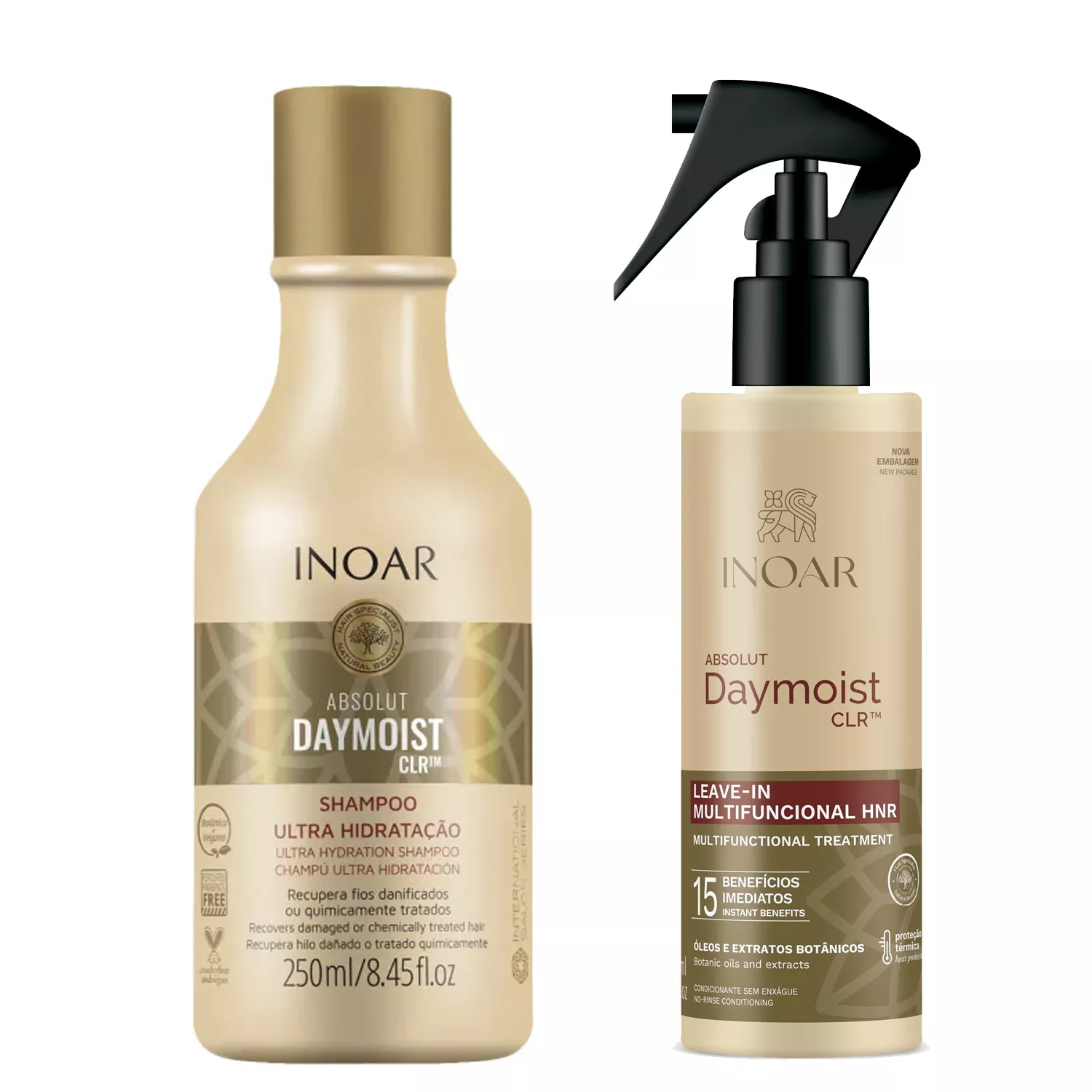 Szampon INOAR Absolut Daymoist CLR przeznaczony jest do pielęgnacji włosów suchych. Świetnie wnika do wnętrza i chroni przed utratą wilgoci. Kosmetyk ten to świetna propozycja dla włosów po inwazyjnych zabiegach chemicznych. Wielofunkcyjna odżywka Absolut DayMoist CLR leave-in w formie wygodnego spray’u. Służy do błyskawicznej rekonstrukcji i poprawy kondycji włosów suchych, osłabionych i zniszczonych zabiegami chemicznymi.