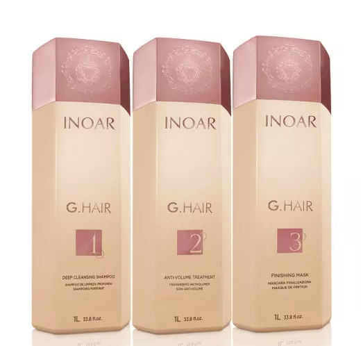 Zabieg rekonstruujący włosy INOAR G-Hair to doskonałe rozwiązanie dla włosów niesfornych i trudnych. Kuracja pozostawia włosy idealnie proste, lśniące i wygładzone. Efekty zabiegu utrzymują się do 6 miesięcy. Preparat z keratyną a służy do trwałego prostowania włosów, nawet opornych. Kuracja zapewnia włosom odpowiedni poziom wilgoci, odbudowuje je i zapewnia im optymalną sprężystość. W skład zestawu do przeprowadzenia zabiegu wchodzą wszystkie niezbędne kosmetyki.
