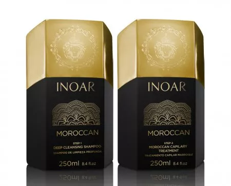 Keratyna do prostowania włosów INOAR Moroccan Keratin Treatment to doskonały wybór. Kosmetyk zapewnia idealne wygładzenie włosów, które utrzymuje się nawet do 3 miesięcy. Ponadto keratyna dzięki swoim właściwościom zapewnia włosom odpowiedni poziom nawilżenia. Szampon oczyszczajacy INOAR Moroccan Keratin Treatment świetnie przygotowuje włosy do zabiegu. Wygładza, nadaje odpowiednie pH oraz doskonały połysk. W składzie znajduje się glinka i olej kokosowy, co wspiera działanie oczyszczające i odżywia pasma. Otwiera łuski i pozwala keratynie dokładnie się wchłaniać.
