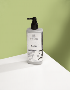 UAU otacza każde pasmo, niewidoczną barierą hydrofobową, która blokuje wilgoć. Polimery aktywują się pod wpływem ciepła suszarki lub prostownicy, zapewniając natychmiastowy efekt gładkich, jedwabistych i pozbawionych puszenia włosów. Wszystko to bez obciążenia i przetłuszczenia.