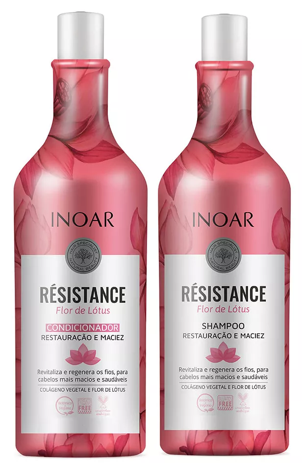 Odkryj siłę roślinnej pielęgnacji i podaruj swoim włosom kompleksową regenerację z INOAR Resistance Lotus DUO PACK – wegańskim zestawem szamponu i odżywki stworzonym specjalnie dla włosów osłabionych i pozbawionych blasku. To idealny wybór, jeśli chcesz przywrócić fryzurze zdrowy wygląd, elastyczność i naturalny połysk. Kosmetyki doskonale sprawdzą się również po zabiegach keratynowego prostowania włosów.