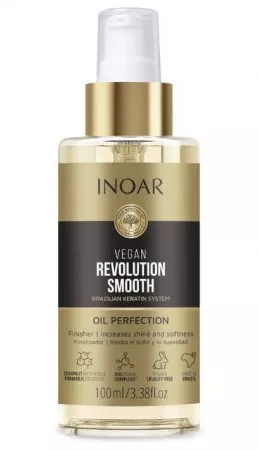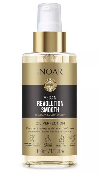 Odkryj siłę odżywienia i wygładzenia z olejkiem do włosów INOAR Revolution Smooth Oil Perfection 100ml. To profesjonalny, wegański olejek stworzony z myślą o wszystkich rodzajach włosów – idealny zarówno do codziennej pielęgnacji, jak i do włosów po zabiegach regenerujących, takich jak keratynowe prostowanie czy nanoplastia. Dzięki lekkiej formule, produkt nie obciąża pasm, zapewniając jednocześnie intensywne nawilżenie, miękkość oraz promienny blask.