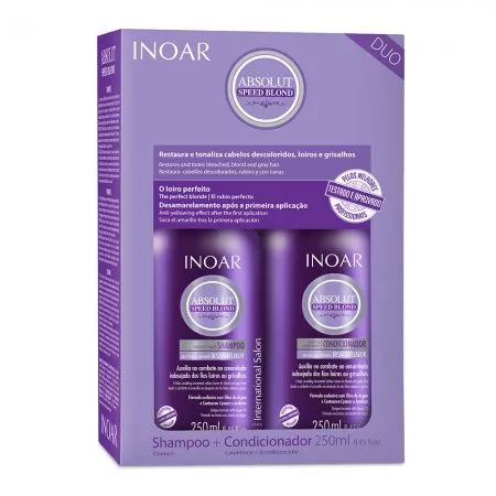 Odkryj profesjonalną pielęgnację włosów blond i siwych z zestawem INOAR Speed Blond DUO PACK. Ten wyjątkowy duet – szampon i odżywka o pojemności 2x250 ml – został stworzony, aby skutecznie niwelować żółte refleksy, nadając włosom chłodny, świeży odcień i zdrowy blask już po pierwszym użyciu. Dzięki zawartości olejku arganowego oraz aktywnych antyoksydantów, zestaw nie tylko dba o kolor, ale również intensywnie nawilża, wygładza i wzmacnia włosy blond i siwe.
