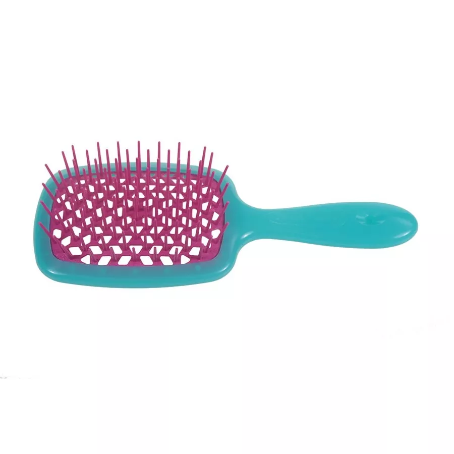 Odkryj Janeke Superbrush szczotkę fryzjerską do rozczesywania włosów w wyjątkowej turkusowo-różowej kolorystyce, która podbiła serca użytkowników na całym świecie. Ta nowatorska szczotka, z rewolucyjną, pneumatyczną konstrukcją, została stworzona, aby zapewnić łatwe i bezbolesne rozczesywanie każdego rodzaju włosów. Dzięki elastycznym ząbkom i specjalnym otworom w podstawie, Superbrush oferuje nie tylko skuteczność, ale i delikatność, czyniąc ją idealnym wyborem nawet dla najmłodszych użytkowników.