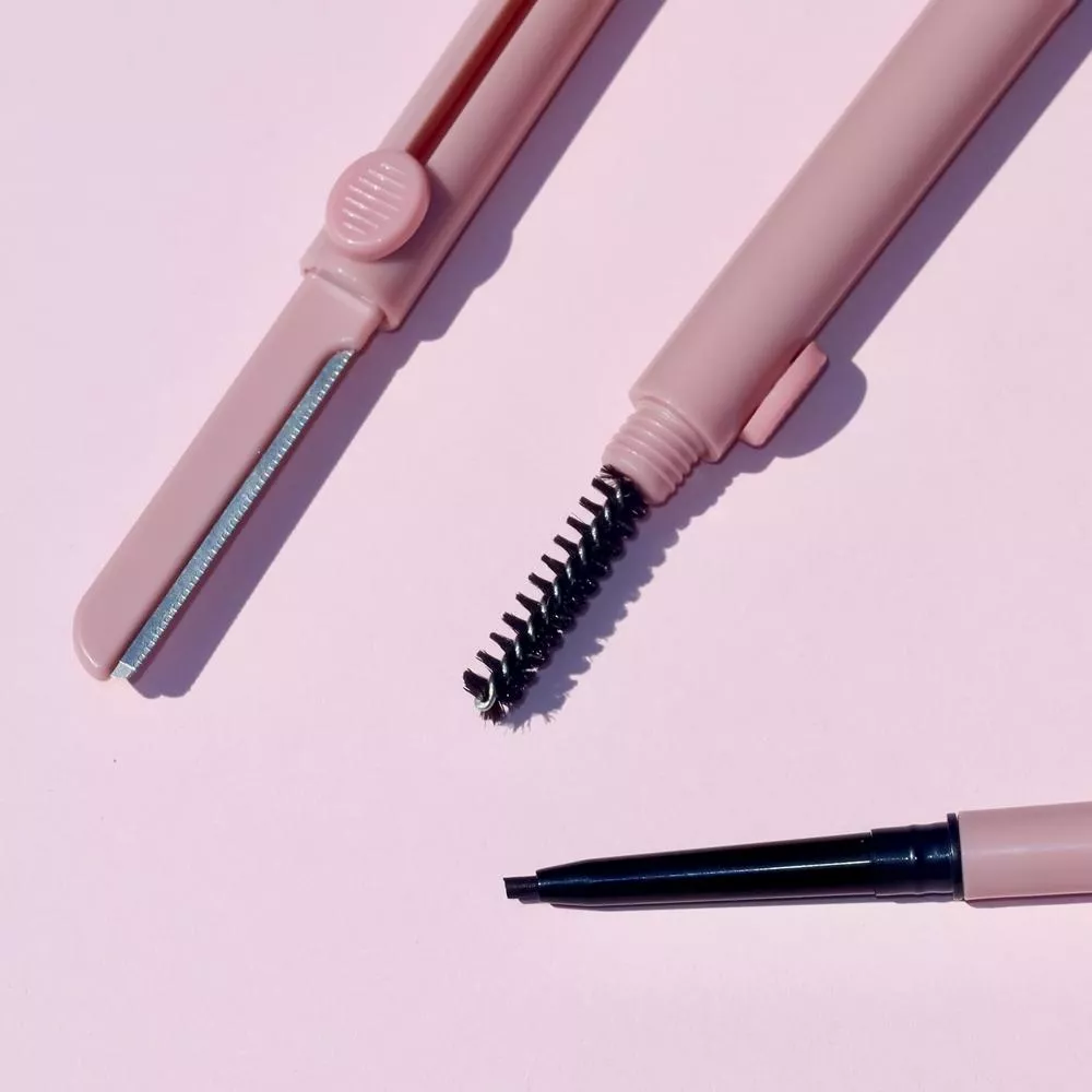 3w1: kredka, szczoteczka i nożyk do brwi w jednym produkcie.