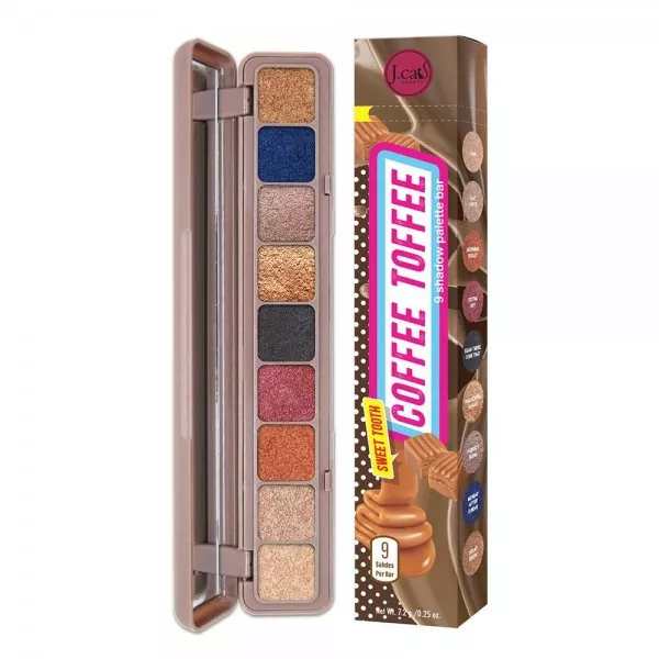 Odkryj nieskończone możliwości makijażu z paletą cieni do oczu J.Cat Beauty Sweet Tooth 9 Shadow Palette Bar w odcieniu Coffee Toffe. Ta kompaktowa paleta łączy w sobie funkcjonalność i unikalny design, inspirowany etui na szczoteczkę, co czyni ją nie tylko praktycznym, ale i stylowym dodatkiem do Twojej kosmetyczki.