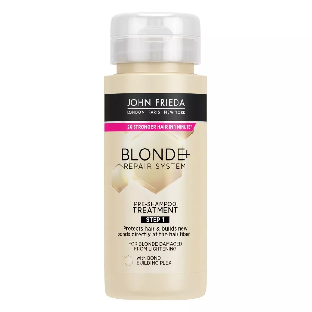 Osiągnij swój najlepszy blond bez kompromisów z kuracją John Frieda Blonde+ Repair System. Ta innowacyjna kuracja przed szamponem stanowi pierwszy krok w 3-stopniowym systemie Blonde+ Repair, który wzmacnia włosy i w ciągu zaledwie minuty naprawia uszkodzenia spowodowane farbowaniem, rozjaśnianiem i stylizacją na gorąco. Nie musisz już wybierać między kolorem a zdrowo wyglądającymi włosami.