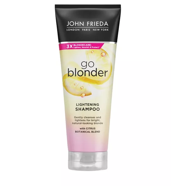 Marzysz o blondzie muśniętym słońcem? Sięgnij koniecznie po szampon rozjaśniający John Frieda Sheer Blonde. W jego składzie znajdują się owoce cytrusowe i rumianek. Kosmetyk stopniowo rozświetla pasma, nadając im jasność niezależnie od pory roku. W składzie znajduje się naturalny kompleks rozjaśniający, który znacznie zmniejsza ilość niechcianych barwników we włosach. Skład wolny jest od amoniaku i wody utlenionej, co sprawia, że szampon jest delikatny i świetnie sprawdzi się w codziennym użyciu.