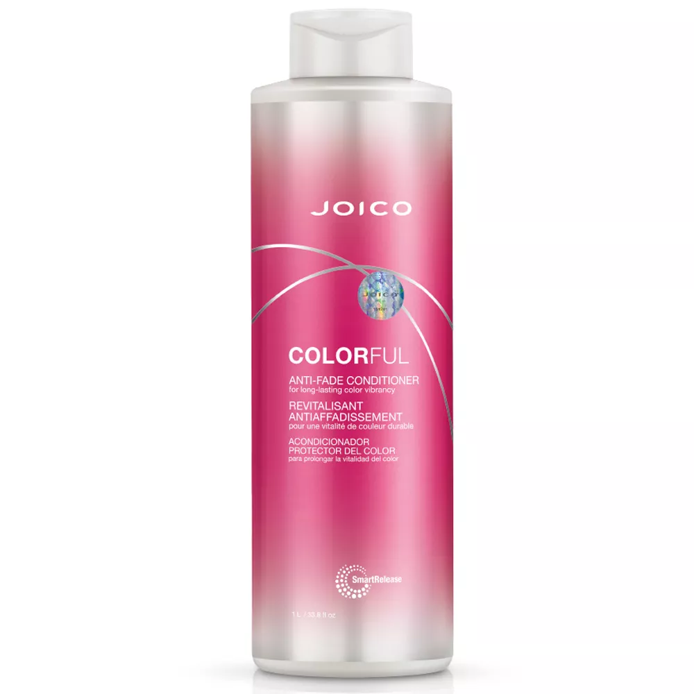 Szukasz skutecznego sposobu, by zachować intensywny kolor swoich farbowanych włosów na dłużej? Joico Colorful Anti-Fade to profesjonalna odżywka przeciwdziałająca blaknięciu koloru, stworzona specjalnie do pielęgnacji włosów po koloryzacji. Dzięki pojemności aż 1000 ml, kosmetyk zapewni Ci długotrwałą ochronę i codzienną regenerację nawet bardzo zniszczonych pasm. Poznaj sekret pięknego, lśniącego koloru bez kompromisów!