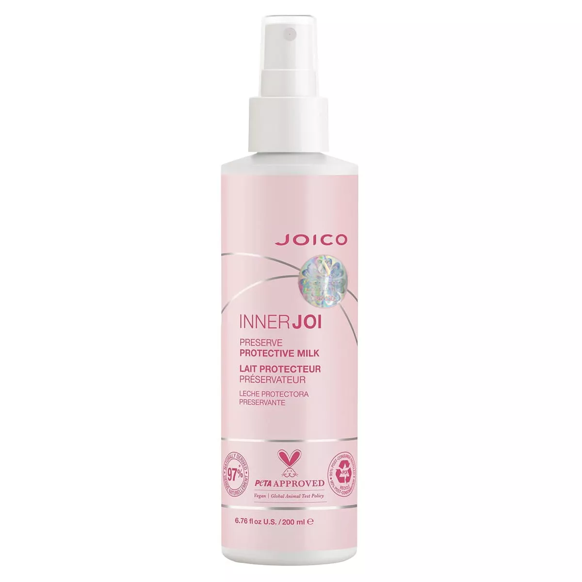 Poznaj Joico InnerJoi Preserve Protective Milk – wegańskie mleczko termoochronne do włosów farbowanych, które zadba o blask i zdrowie Twoich włosów każdego dnia. Ten innowacyjny spray bez spłukiwania z ekstraktem z buraka i olejkiem z pestek malin nie tylko chroni kolor przed blaknięciem, ale także zapewnia intensywną ochronę termiczną nawet do 232°C. Odkryj codzienną pielęgnację włosów koloryzowanych opartą aż w 97% na składnikach pochodzenia naturalnego!