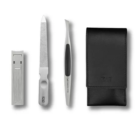 Odkryj profesjonalną pielęgnację paznokci z zestawem KAI Beauty Care, który łączy w sobie funkcjonalność, prosty design i najwyższą jakość wykonania. Ten starannie zaprojektowany komplet narzędzi, zamknięty w eleganckim etui z naturalnej skóry nappa, zapewnia wszystko, czego potrzebujesz, by zadbać o swoje paznokcie w domu lub w podróży.