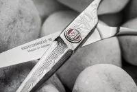 - Wyraźna warstwowość stali nadaje nożyczkom niepowtarzalny, luksusowy wygląd – każda para ma unikatowy wzór.