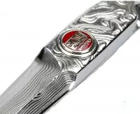 - Stal damasceńska (8 warstw): połączenie twardej stali VG-10W oraz miękkiej stali SUS 410.
