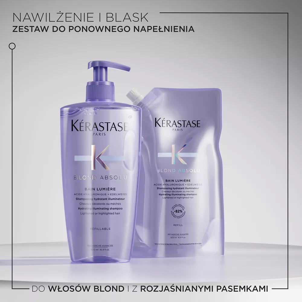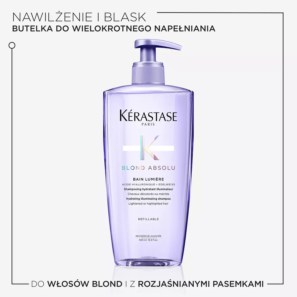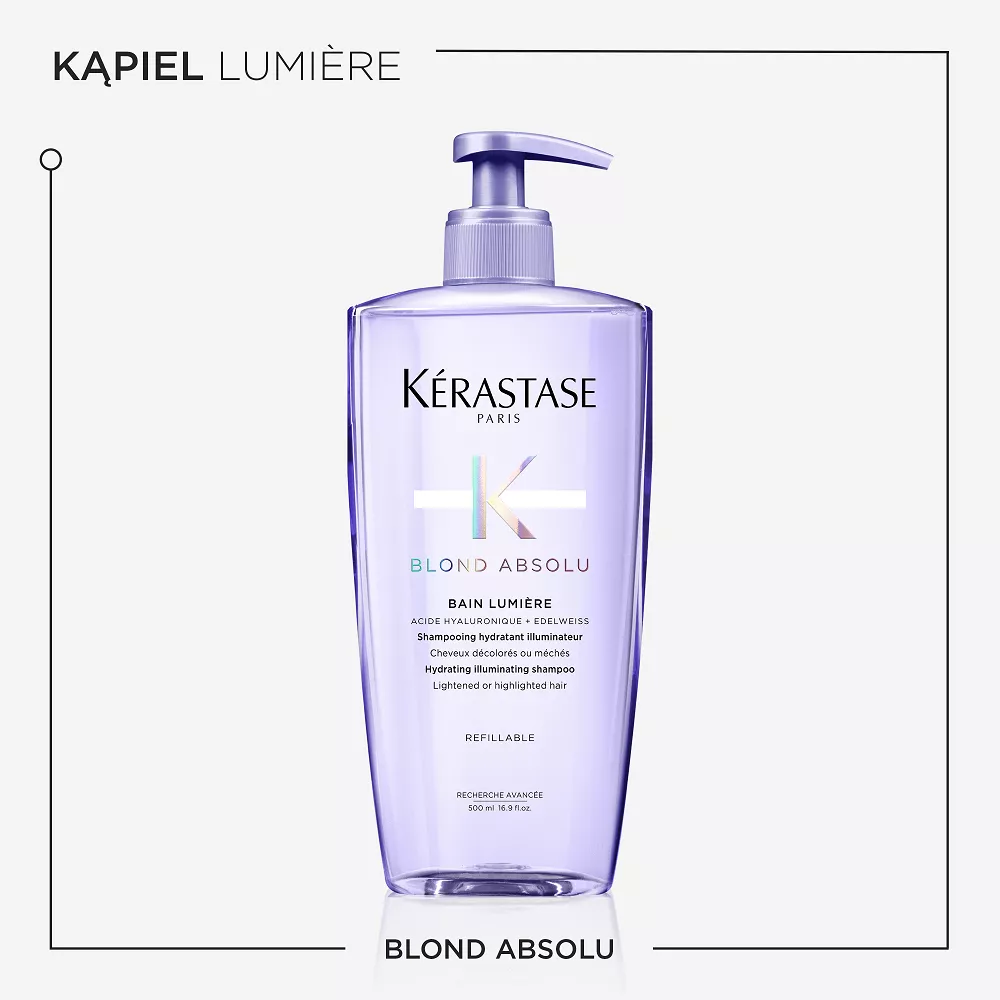 Szampon Blond Absolu Lumière to nawilżający szampon dla każdego typu włosów blond, który sprawi, że włosy będą zdrowo wyglądające i pełne blasku. Specjalnie opracowana formuła z dodatkiem kwasu hialuronowego i wyciągu z kwiatów szarotki alpejskiej gwarantuje doskonałe działanie nawilżające i rozświetlające szamponu. Dzięki przezroczystej żelowej konsystencji naprawia uszkodzenia powierzchni już po jednym użyciu i delikatnie eliminuje z włosów zanieczyszczenia i czynniki powodujące matowienie. Formuła szamponu została opracowana z myślą o połączeniu z odżywką Cicaflash, które sprawi, że włosy będą lekkie i naturalnie lśniące.