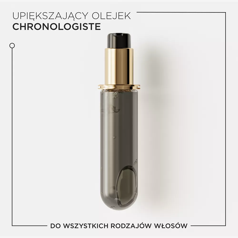 Olejek do włosów Chronologiste, wzbogacony ekstraktem z mirry, jest olejkiem zapachowym do włosów stworzonym na bazie wyjątkowego połączenia szlachetnych nut zapachowych: róży herbacianej, jasnego drewna i piżma. Już kilka kropel olejku o delikatnym zapachu sprawia, że włosy są zrewitalizowane, nawilżone i pogrubione.