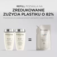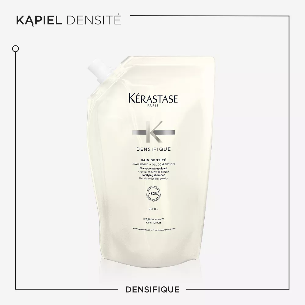 Kerastase Densifique, szampon jest przeznaczony do włosów dotkniętych problemem utraty gęstości. Kąpiel Densité wzmacnia włosy zaczynając od ich włókien i sprawia, że stają się bardziej odporne. Przywraca włosom gęstość i sprężystość sprawiając, że stają się widocznie gęstsze i grubsze.