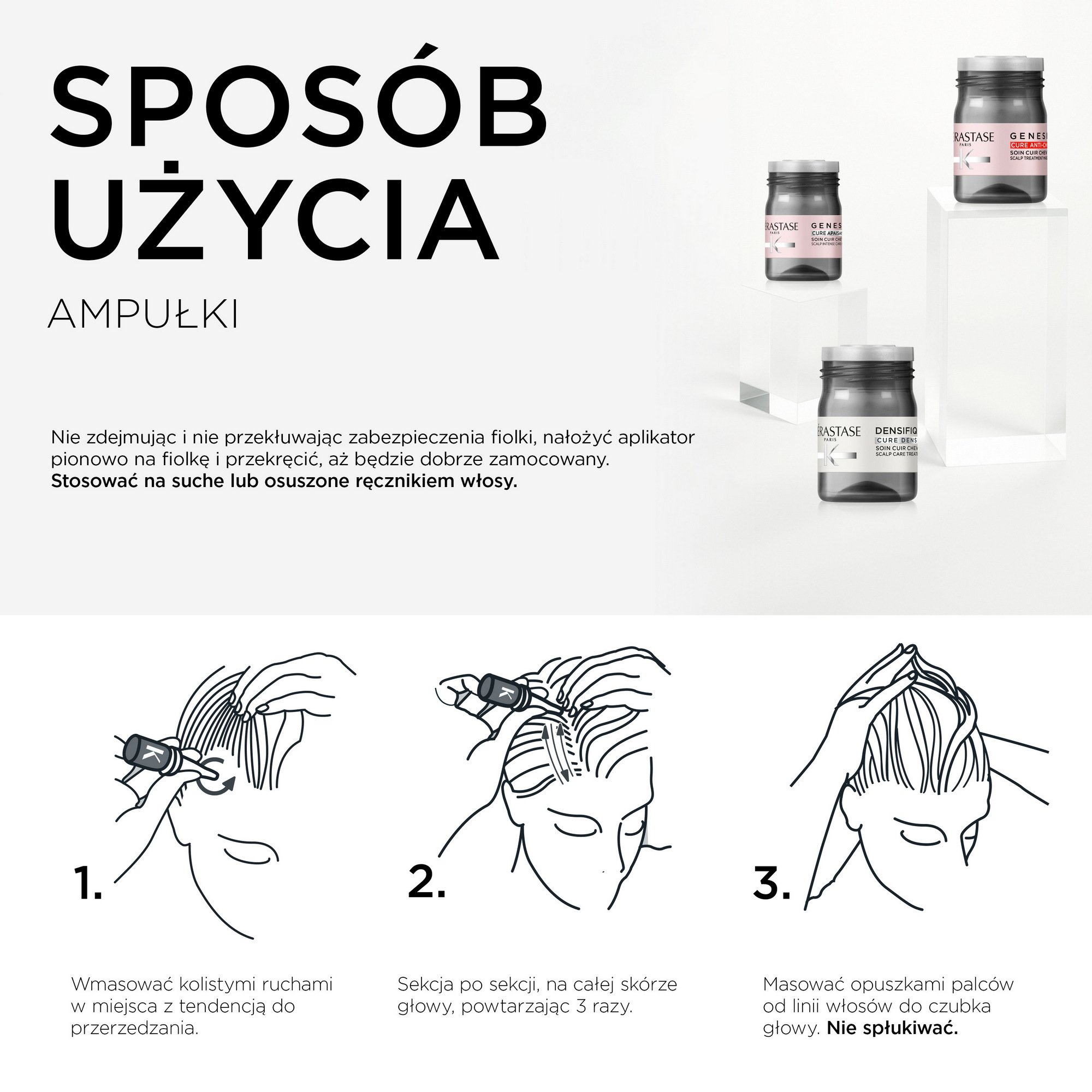 Stosuj na suche lub osuszone ręcznikiem włosy.