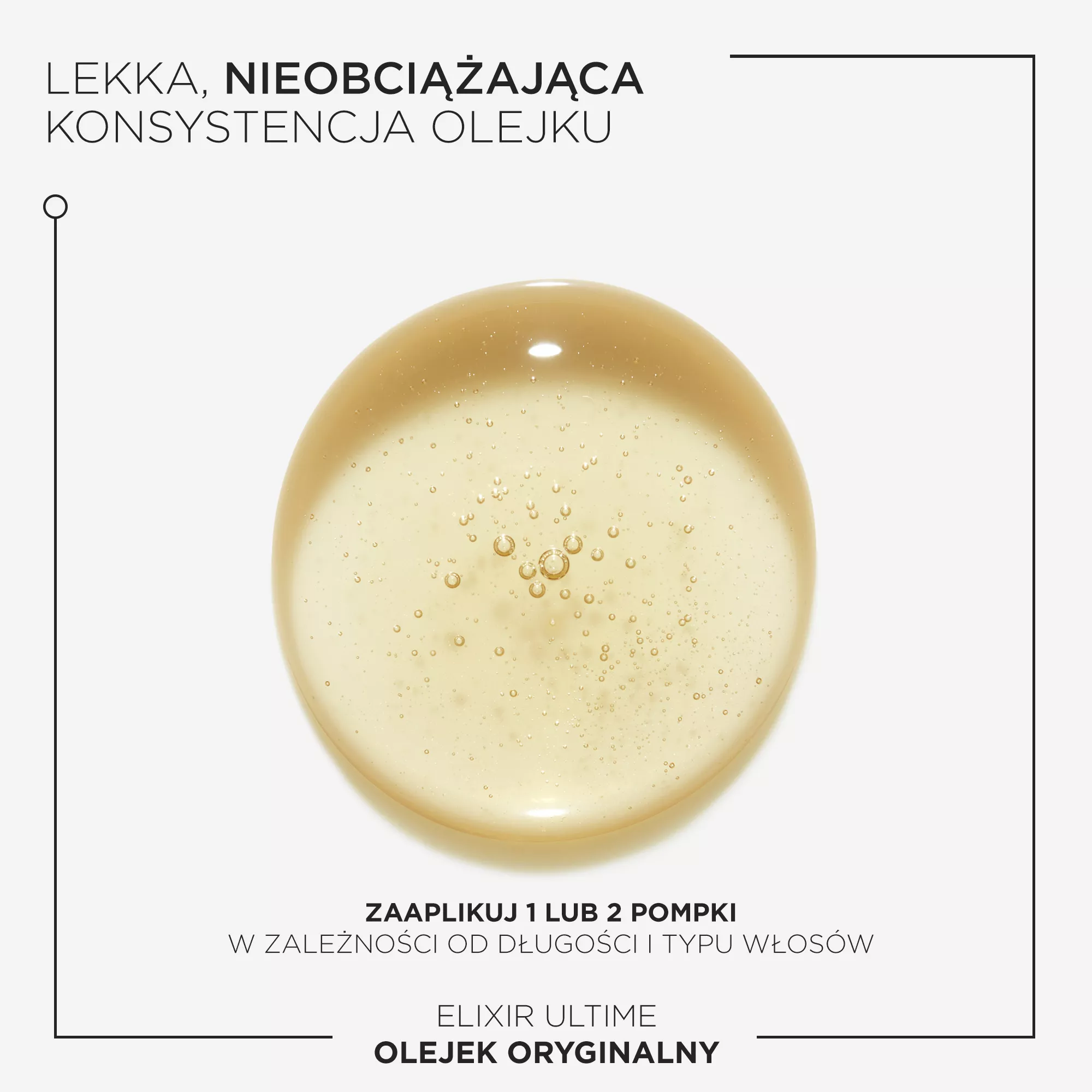 Nałóż 1-2 krople na mokre lub suche włosy i zostaw na włosach bez spłukiwania. Nakładaj od połowy długości włosów aż po same końce. Wystylizuj włosy według preferencji. Można go stosować przed myciem włosów, przed suszeniem suszarką oraz jako wykończenie i do poprawek fryzury w ciągu dnia.