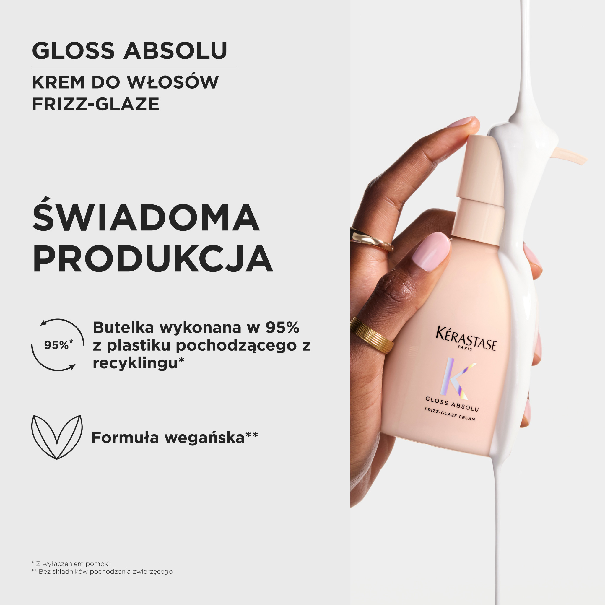 Krem do włosów Gloss Absolu Créme Frizz-Glaze to pierwszy wygładzający krem do stylizacji bez spłukiwania od Kérastase. Powstał z myślą o włosach grubych i puszących się, wymagających natychmiastowego wygładzenia. Formuła wzbogacona o kwas hialuronowy, kwas glikolowy, olejek z dzikiej róży, glicerynę, białko sojowe i olej rycynowy zapewnia trwałą i nieskazitelną fryzurę przy każdej pogodzie.