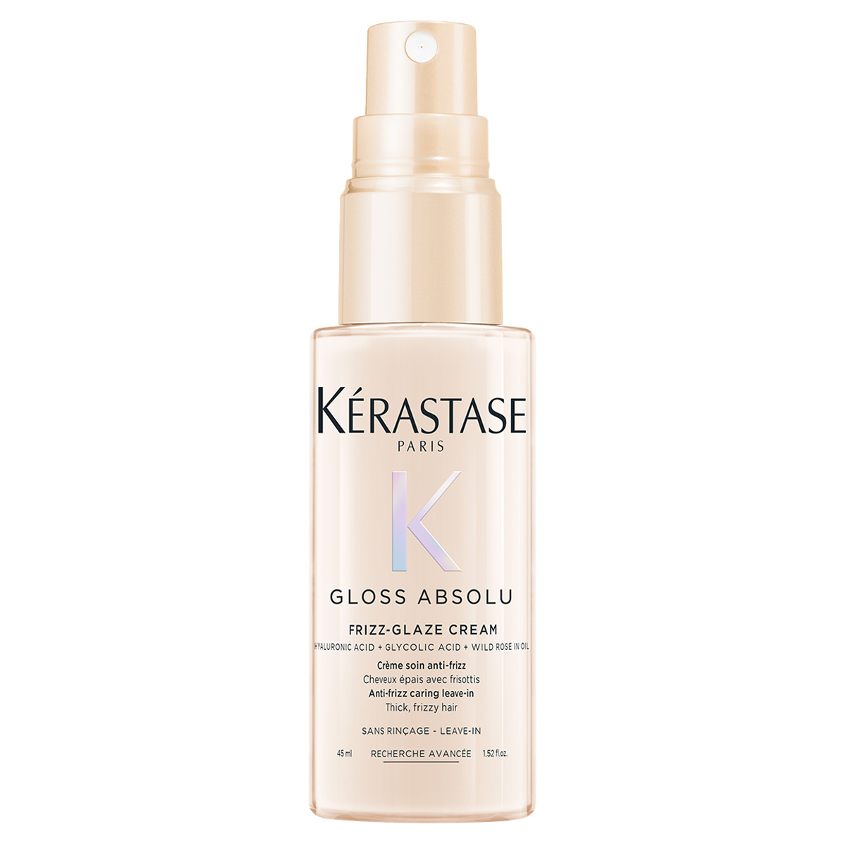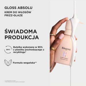 Krem do włosów Gloss Absolu Créme Frizz-Glaze to pierwszy wygładzający krem do stylizacji bez spłukiwania od Kérastase. Powstał z myślą o włosach grubych i puszących się, wymagających natychmiastowego wygładzenia. Formuła wzbogacona o kwas hialuronowy, kwas glikolowy, olejek z dzikiej róży, glicerynę, białko sojowe i olej rycynowy zapewnia trwałą i nieskazitelną fryzurę przy każdej pogodzie.